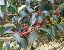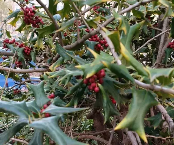 枸骨(学名:Ilex cornuta)又名猫儿刺、老虎刺等,为常绿灌木或小乔木,叶形奇特,碧绿光亮,四季常青,入秋后红果满枝,经冬不凋,艳丽可爱,是优良的观叶、观果树种,在欧美国家常用于圣诞节的装饰,故也称“圣诞树”。
