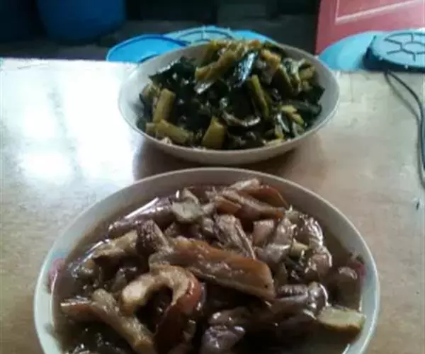 5. 经腌透的猪头肉,取出用竹竿穿住细绳,置良好的地方晾晒,约经3日即可收藏备食。