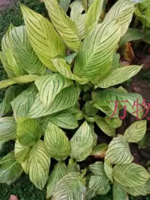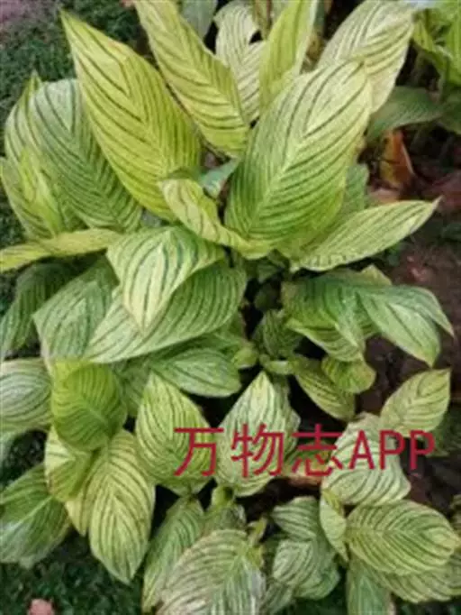 丛生,株高约50-100公分,地下有根茎。叶互生,柄鞘抱茎,卵状披针形,表面具有乳黄或乳白色平行脉线,叶姿优美。春末至秋季均能开花,但以夏季最盛开,顶生,总状花序,花色清黄。