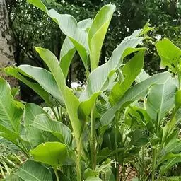 蕉芋:为美人蕉科的植物。多年生草本植物,高达3米。具块状根茎。茎紫色,直立,粗壮。叶互生;叶柄短;…