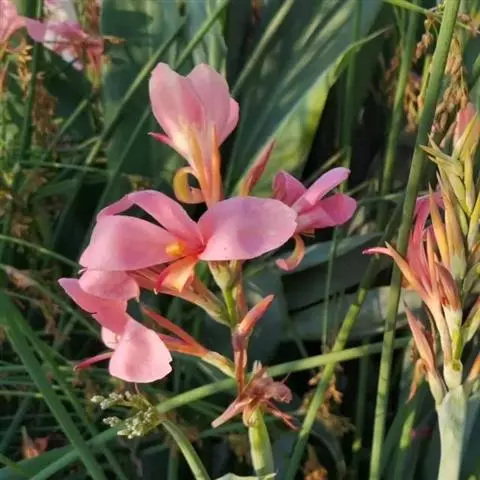 粉美人蕉:是一种球根草本植物。根茎延长,株高1.5-2米;茎绿色。叶片披针形;总状花序疏花,单生或…