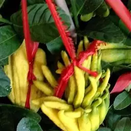 香橼为小乔木或灌木状;株高达5米;幼枝、芽及花蕾均暗紫红色;茎枝多刺,长达4厘米;单叶,…