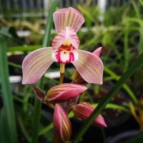 寒兰是兰科兰属的地生草本植物。茎为椭圆形;叶呈带状,尾部修长渐尖,叶脉较明显;每秆花枝开5-12朵,…