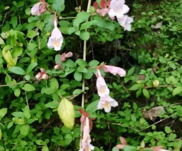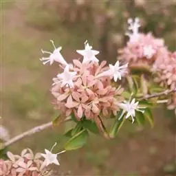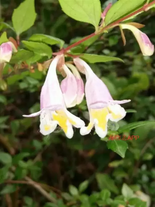 蓪梗花(学名:Abelia engleriana (Graebn.) Rehd. )是忍冬科,六道木属落叶灌木,高可达2米;幼枝红褐色,老枝树皮条裂脱落。叶片圆卵形、狭卵圆形、菱形、狭矩圆形至披针形,花生于侧生短枝顶端叶腋,萼筒细长,裂片椭圆形,花冠红色,狭钟形,花药长柱形,花丝白色;柱头头状,果实长圆柱形,5-6月开花,8-9月结果。