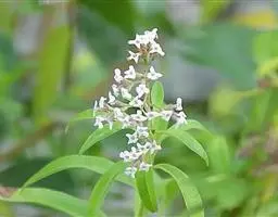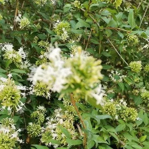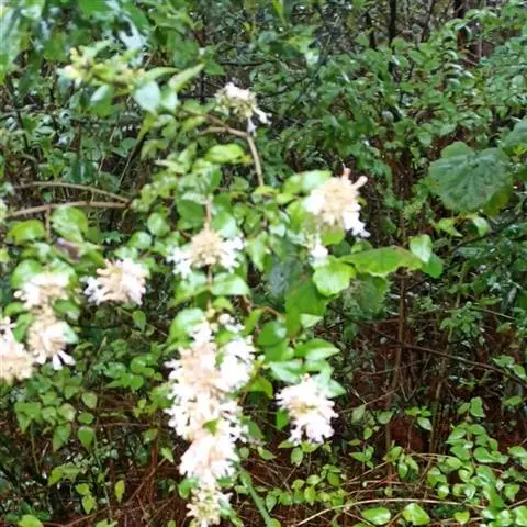 蓪梗花 落叶灌木,高1-2米;幼枝红褐色,被短柔毛,老枝树皮条裂脱落。叶圆卵形、狭卵圆形、菱形、狭矩圆形至披针形,长1.5-4厘米,宽5-15毫米,顶端渐尖或长渐尖,基部楔形或钝形,边缘具稀疏锯齿,有时近全缘而具纤毛,两面疏被柔毛,下面基部叶脉密被白色长柔毛;叶柄长2-4毫米。