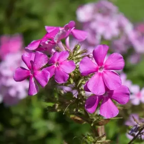圆锥状聚伞花序顶生,有短柔毛,花梗很短;花萼筒状,萼裂片披针状钻形,长2-3毫米,外面有柔毛,结果时开展或外弯;花冠高脚碟状,直径1-2厘米,淡红、深红、紫、白、淡黄等色,裂片圆形,比花冠管稍短;雄蕊和花柱比花冠短很多。蒴果椭圆形,长约5毫米,下有宿存花萼。种子长圆形,长约2毫米,褐色。