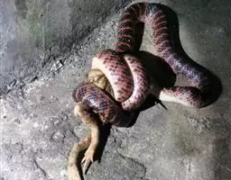 赤链蛇也很喜欢吃小鸡,孵鸡场淘汰的雏鸡也是一种上好的食料。