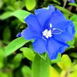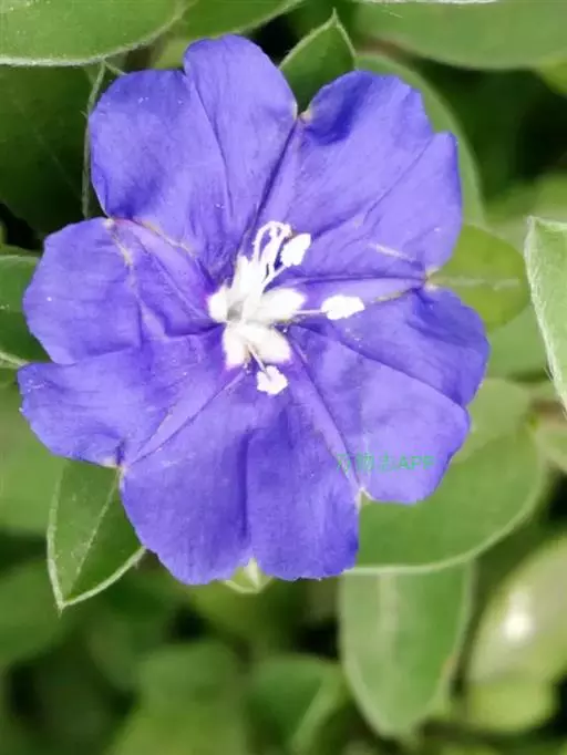 总花梗丝状,较叶短或长得多,长2.5-3.5厘米,被贴生毛;花单1或数朵组成聚伞花序,花柄与萼片等长或通常较萼片长;苞片线状钻形至线状披针形,长1.5-4毫米;萼片披针形,锐尖或渐尖,长3-4毫米,被长柔毛;花冠辐状,直径7-8(-10)毫米,蓝色或白色;雄蕊5,内藏,花丝丝状,长约4毫米,贴生于花冠管基部;花药长圆状卵形,先端渐尖,基部钝,长约1.5毫米;子房无毛;花柱2,每1花柱2尖裂,柱头圆柱形,先端稍棒状。