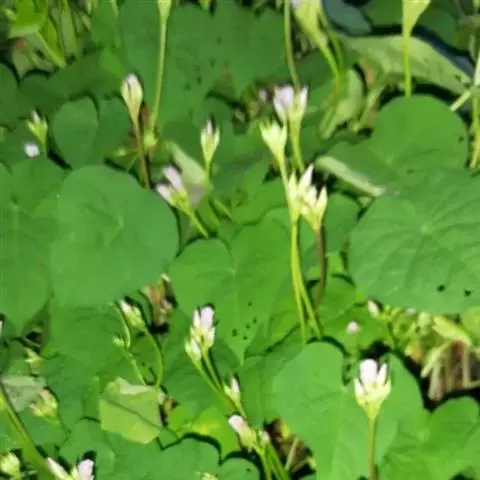 土丁桂,别名:毛辣花、白鸽草、白毛将、白头妹、过饥草、毛将军、银花草、暴臭蛇、烟油花,拉丁文名:Evolvulus alsinoides (L.) L. 旋花科、土丁桂属多年生草本,茎少数至多数,平卧或上升,细长,具贴生的柔毛。叶长圆形,椭圆形或匙形,我国长江以南各省及台湾省有分布。灌丛及路边。自热带东非洲,马达加斯加,经印度,中南半岛,马来亚至菲律宾均有分布。全草药用,有散瘀止痛,清湿热之功能。
