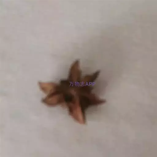 短柱八角:由10-13个果组成,单一果呈小艇形,长1.8-2.3厘米,宽1.5-1.8厘米,先端急尖,顶端不弯曲,果皮略厚,臭微,味微苦,辣,麻舌。
