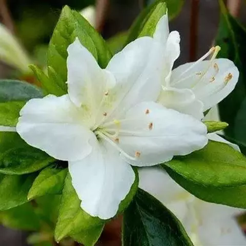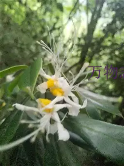 长蕊杜鹃(学名:Rhododendron stamineum Franch.):常绿灌木或小乔木,高可达7米;幼枝纤细,无毛。叶革质,常轮生枝顶,椭圆形或长圆状披针形,上面深绿色,具光泽,下面苍白绿色,两面无毛,叶柄无毛。花芽圆锥状,鳞片卵形,覆瓦状排列,仅边缘和先端被柔毛。花常簇生枝顶叶腋;花梗无毛;花萼小;花冠白色,有时蔷薇色,漏斗形,裂片倒卵形或长圆状倒卵形,花冠管筒状,蒴果圆柱形,4-5月开花,7-10月结果。
