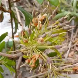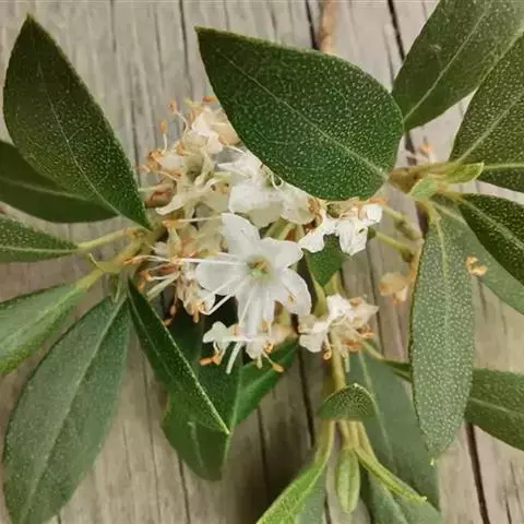 常绿灌木或小乔木,高约3-7米;幼枝纤细,无毛。叶常轮生枝顶,革质,椭圆形或长圆状披针形,长6.5-8厘米,稀达10厘米以上,宽2-3.5厘米,先端渐尖或斜渐尖,基部楔形,边缘微反卷,上面深绿色,具光泽,下面苍白绿色,两面无毛,稀干时具白粉,中脉在上面凹陷,下面凸出,侧脉不明显;叶柄长8-12毫米,无毛。花芽圆锥状,鳞片卵形,覆瓦状排列,仅边缘和先端被柔毛。