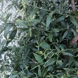 牛膝,别名:牛磕膝,拉丁文名:Achyranthes bidentata Blume. 苋科、牛膝属多年生草本,高70-120厘米;根圆柱形,直径5-10毫米,土黄色;茎有棱角或四方形,绿色或带紫色,有白色贴生或开展柔毛,或近无毛,分枝对生。叶片椭圆形或椭圆披针形,少数倒披针形,基部楔形或宽楔形,两面有贴生或开展柔毛;退化雄蕊顶端平圆,稍有缺刻状细锯齿。胞果矩圆形,黄褐色,光滑。种子矩圆形,黄褐色。花期7-9月,果期9-10月。根入药,生用,活血通经。