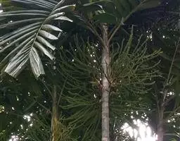 酒椰,茎直立,中等乔木状,高达5-10米。叶为羽状全裂,全长12-13米;羽片线形,长1.2-2米…