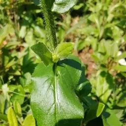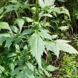 基生叶丛生,花时枯落,卵形、椭圆形或椭圆状披针形,长(1.8-)3-10.5厘米,宽1.2-3厘米,不分裂或羽状分裂或全裂,顶端钝或尖,基部楔形,边缘具粗锯齿,上面暗绿色,背面淡绿色,两面被糙伏毛或几无毛,具缘毛;叶柄长3-12厘米;茎生叶对生,宽卵形至披针形,长5-15厘米,常羽状深裂或全裂具2-3(-5)对侧裂片,顶生裂片卵形、椭圆形或椭圆状披针形,先端渐尖,具粗锯齿,两面密被或疏被白色糙毛,或几无毛,上部叶渐变窄小,无柄。
