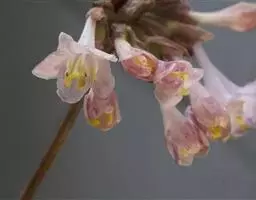 花序为聚伞花序组成的大型伞房花序,顶生,具5-6(7)级分枝;花序梗上方一侧被开展白色粗糙毛;总苞线形,甚小;苞片小;花小,萼齿不明显;花冠钟形,黄色,冠筒长1.5毫米,上部宽1.5毫米,基部一侧囊肿不明显,内具白色长柔毛,花冠裂片卵形,长1.5毫米,宽1-1.3毫米;雄蕊4,稍超出或几不超出花冠,花丝不等长,近蜜囊的2枚长3.5毫米,下部被柔毛,另2枚长2.7毫米,无毛,花药长圆形,长约1毫米;子房椭圆状长圆形,长约1.5毫米,花柱长2.5毫米,柱头盾状或截头状,径0.5-0.6毫米。