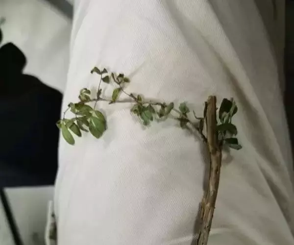 偶数羽状复叶长7-12厘米,叶轴顶端卷须发达;托叶半戟形,有2-4裂齿;小叶5-7对,长卵圆形或长圆披针形,长0.6-3厘米,宽0.4-1.3厘米,先端钝或平截,微凹,有短尖头,基部圆形,两面被疏柔毛,下面较密。