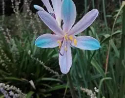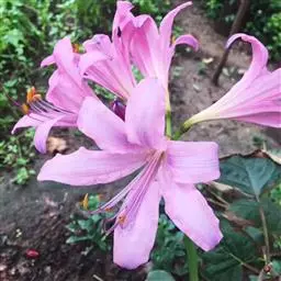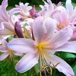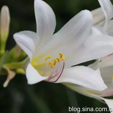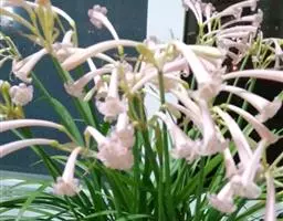 长筒石蒜草本,地生。鳞茎卵球形;叶披针形;伞形花序,有花5-7朵,花白色;花被裂片腹面稍有淡红色条纹,…