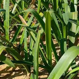 蓟马通体红色,主要在球茎发叶处吸食营养,导致叶片失绿,尤其是果实成熟后发现较多,可以用25%吡虫啉3000倍液、70%艾美乐6000~10000倍液轮换喷雾防治。