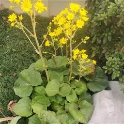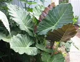 基生叶大,倒卵状长圆形至倒卵形,长30~60厘米,顶端圆钝,边缘皱缩,波状,有时具不显明牙齿,中脉白色,很宽;有多数粗壮的侧脉,叶柄白色,扁平,长5-9厘米,宽2-8厘米,边缘有具缺刻的宽薄翅;上部茎生叶长圆状卵形、长圆披针形至长披针形,长2.5-7厘米,顶端圆钝至短急尖,全缘或有裂齿,有柄或抱茎,耳状,有粉霜。