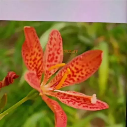 射干 Redouté)是鸢尾科射干属多年生草本植物。根状茎为不规则的块状,斜黄色或黄褐色;花橙红色,…