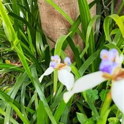 双色野鸢尾为多年生草本植物,叶子呈剑状淡绿色。…