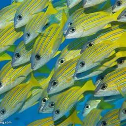 生存环境温度:26°C - 29°C 圆柱形六带鲹鱼群风暴