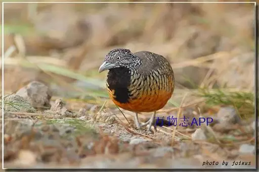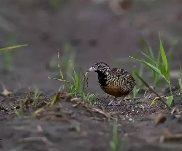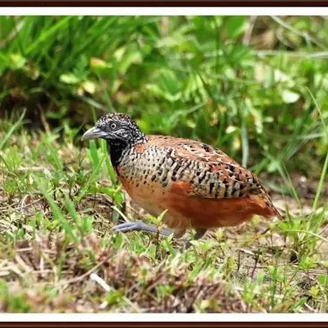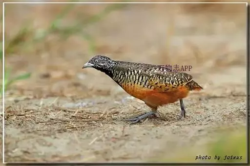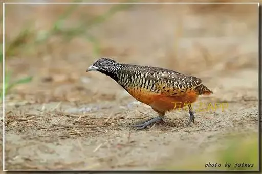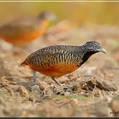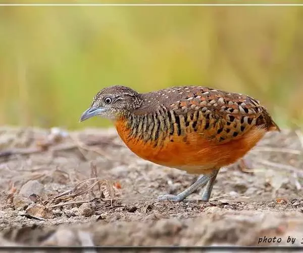 林三趾鹑(学名:Turnix sylvaticus)小型鸟类,体长11~15厘米。外形很像鹌鹑,但胸为棕黄色,两胁有黑色斑点,头具淡乳黄色中央冠纹。头两侧和喉白色,腹亦为白色。尾较尖,无后趾。相似种鹌鸫体型较大,脚具后趾,尾短,具白色眉纹,胸白色而不为棕色,两胁具栗色条纹,区别极明显,容易识别。