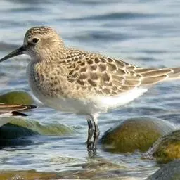头顶暗褐色,头顶中央具乳黄色或淡黄白色中央冠纹和一条不甚显著的眉纹;上背栗色,羽缘皮黄色,翅上覆羽具白色条纹。背中部红褐色,具黑色横斑和淡色羽缘。下背、腰和尾上覆羽和背相似,但羽色较暗。头两侧淡白色,微具黑色斑点。颏、喉白色,胸棕黄色,两侧具少许暗褐色斑点;腹白色,两胁具黑色和栗色“V”形斑。肩、内侧翅覆羽和最内侧飞羽同背,但具宽的皮黄白色羽缘,外哃具黑色和棕色斑点。