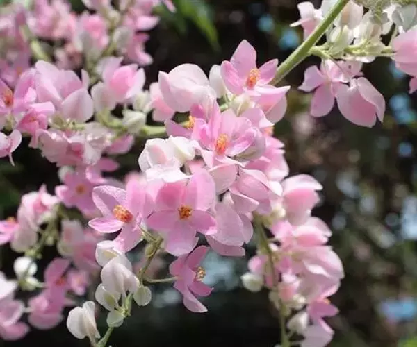 珊瑚藤花期极长,繁花满枝,美丽异常,被称为藤蔓植物之后。若攀援在树上,则满树粉红,让人分不清是树还是藤在开花。在园林中可用于凉亭、棚架、栅栏的绿化,也可植于坡面做地被植物,同时也是庭院垂直绿化的良好材料。