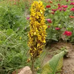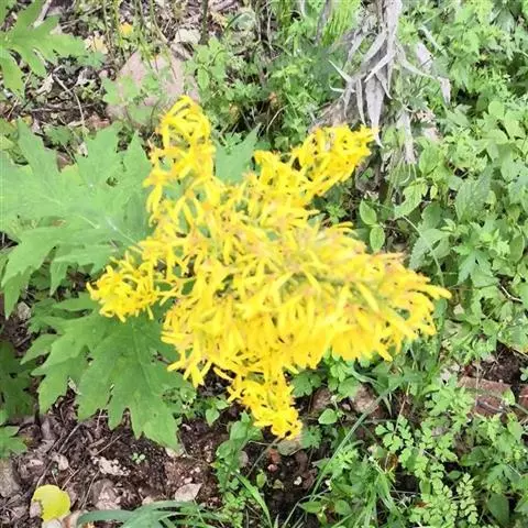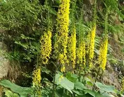 圆锥状总状花序或总状花序长达20厘米,常疏离;苞片披针形至线形,有时长于花序梗,长达8厘米;花序梗长达10.5厘米,一般长0.5-3厘米;头状花序多数,辐射状,常偏向花序轴的一侧;小苞片线状钻形;总苞陀螺形,基部尖,长5-14毫米,宽5-15(20)毫米,总苞片7-9,2层,卵形或披针形,宽2-7毫米,先端急尖,背部光滑,内层边缘膜质。舌状花黄色,舌片宽椭圆形或卵状长圆形,长7-14毫米,宽3-6毫米,先端急尖,管部长约2毫米;管状花多数,长5-6毫米,管部长约1毫米,冠毛白色与花冠等长。