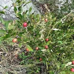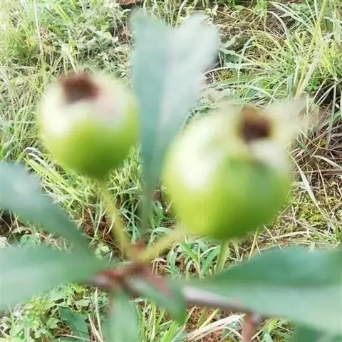 果实近球形或梨形,果形较大,直径可达2.5厘米,深亮红色,有浅色斑点;小核3-5,外面稍具稜,内面两侧平滑;萼片脱落很迟,先端留一圆形深洼。花期5-6月,果期9-10月。