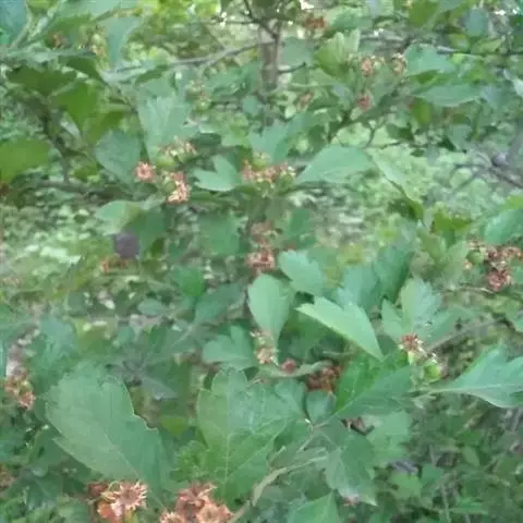红蜘蛛是危害山里红重要害虫。该虫主要吸食叶片及初始萌发芽的汁液,且危害幼果。芽严重受害后不能继续萌发而死亡。叶片严重受害后可全叶变黄、焦枯而脱落。
