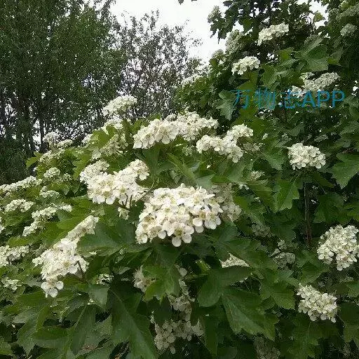 山里红(学名:Crataegus pinnatifida var. major N. E. Brown)是蔷薇科,山楂属山楂的变种,落叶乔木,植株生长茂盛。高达6米,树皮粗糙,小枝圆柱形,冬芽三角卵形,紫色。叶片宽卵形或三角状卵形,稀菱状卵形,叶片大,分裂较浅;裂片卵状披针形或带形,托叶草质,边缘有锯齿。伞房花序具多花,苞片膜质,线状披针形,萼筒钟状,花瓣倒卵形或近圆形,白色;花药粉红色;果实近球形或梨形,深红色,有浅色斑点;花期5-6月,果期9-10月。