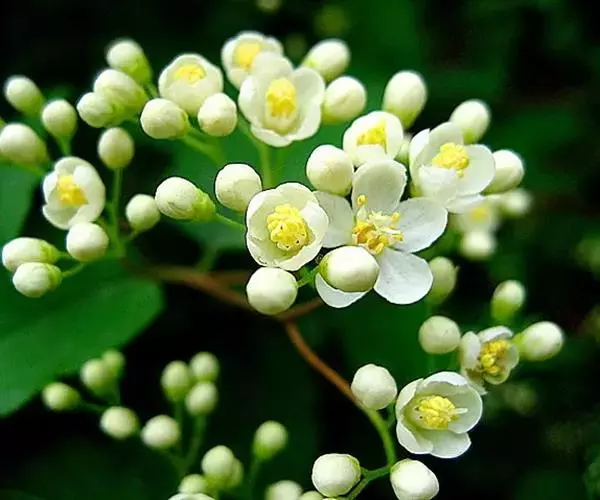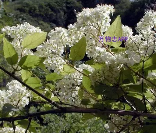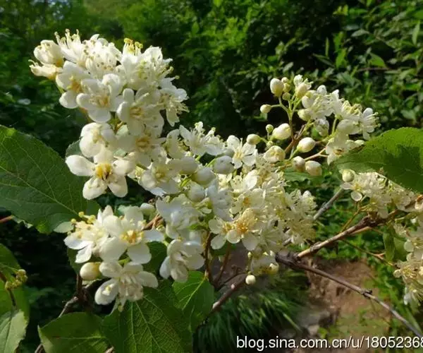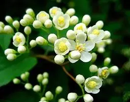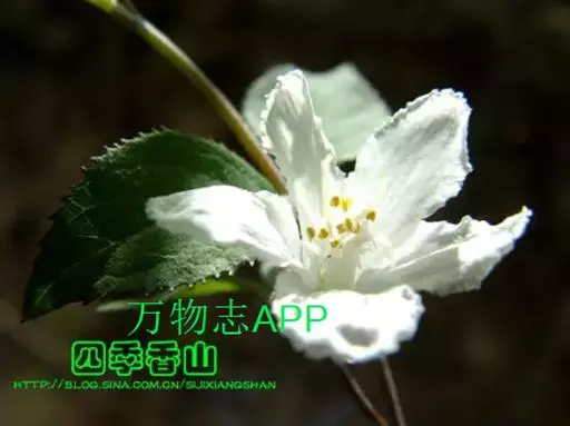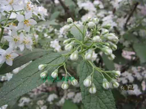 聚伞花序长和直径均1~3cm,具花(1~) 2~3朵;花蕾长圆形;花冠直径2~2.5cm;花梗长1~2mm,被星状毛;萼筒浅杯状,高约2.5mm,直径约4mm,密被灰黄色星状毛,有时具中央长辐线,裂片线状披针形,较萼筒长,宽1~1.5mm,被毛较稀疏;花瓣白色,长圆形或倒卵状长圆形,长约1.5cm,宽约7mm,先端圆形,中部以下收狭,外面被星状毛,花蕾时内向镊合状排列;外轮雄蕊长6~7mm,花丝先端2齿,齿平展或下弯成钩状,花药卵状长圆形,具短柄,内轮雄蕊较短,形状与外轮相同;花柱3(~4),约与外轮雄蕊等长。