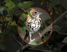 雌鸟上体橄榄色,额至后颈橄榄褐色,腰部较灰色。耳羽橄榄褐色具白色羽干纹,两翅和尾褐色,外翈羽缘灰棕色,飞羽内翈暗褐色。颏,喉灰白色微沾栗红色、缀有黑褐色斑点,两侧斑点连成一条线状,上胸灰色具黑褐色斑点,胸侧,两胁、腋羽和翼下覆羽橙栗色,胸和两胁杂有黑色斑点,有的两胁呈橄榄灰色,微沾橙栗色,腹中部和尾下覆羽白色。