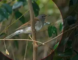 白眉歌鸫,是雀形目鸫科鸫属鸟类。体型略小并具有褐色斑点的歌鸫,上体橄榄褐色,眉纹白色,脸部斑驳,…
