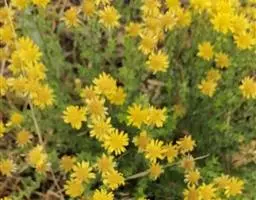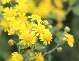 花:头状花序多数,径5-8毫米,排列成开展具叶的大圆锥花序;花序梗长5-8毫米,被黄褐色密柔毛;总苞钟形,长约7毫米,稍长于花盘;总苞片约6层,草质,外层长圆形,长1.5-2.5毫米,顶端钝或短尖,背面被密柔毛,中层线形,顶端略尖,背面被疏毛,内层长于外层4倍;花托蜂窝状,径2-3毫米,无毛。花黄色,雌花多数,花冠细管状,长约6毫米,檐部2-4齿裂,裂片无毛;两性花较少数,与雌花几等长,花冠管状,向上渐宽,檐部5齿裂,裂片卵形,短尖,被短柔毛。
