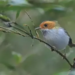 栗头地莺(学名:Tesia castaneocoronata):小型鸣禽。体长约10厘米。体型纤细,是中国体型最小的鸟类之一;喙细尖,上喙先端多有缺刻;翅短圆;尾短至中等;腿短而细。羽色以灰、褐及橄榄绿为主,雌雄羽色相似。栖息于灌木或稀疏林内,以昆虫为主食,鸣声清脆、多变、悦耳。在灌丛中或树上以草茎、苔藓、兽毛等编制碗状巢,每窝产卵2-3枚,由雌雄轮流孵卵,两性育雏,孵化期及雏期约12-14天。栖息于多种环境中。留鸟。分布于中国和东南亚各国。