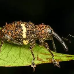 竹象鼻虫,Cyrtotrachelus longimanus,象甲科锥大象甲属的一种昆虫。分布于竹产区,是竹类的主要害虫。以幼虫蛀食竹笋,使笋枯死,还会蛀食1米多高的嫩竹,使其生长不良,节间缩短,拦腰折断,造成顶端小枝丛生以及嫩竹纵裂成沟等畸形现象,结果使嫩竹腐败。