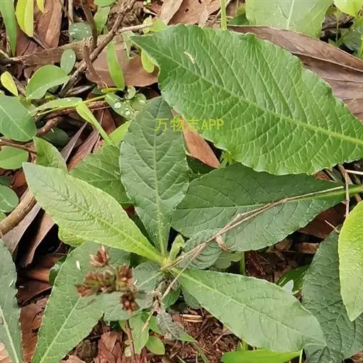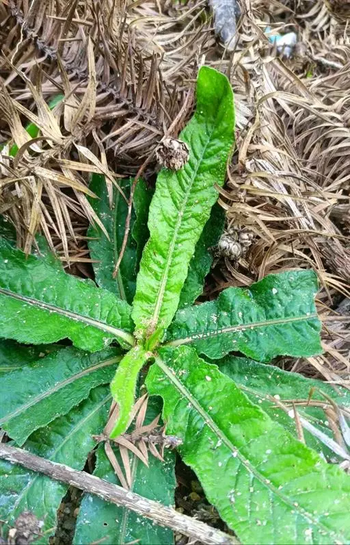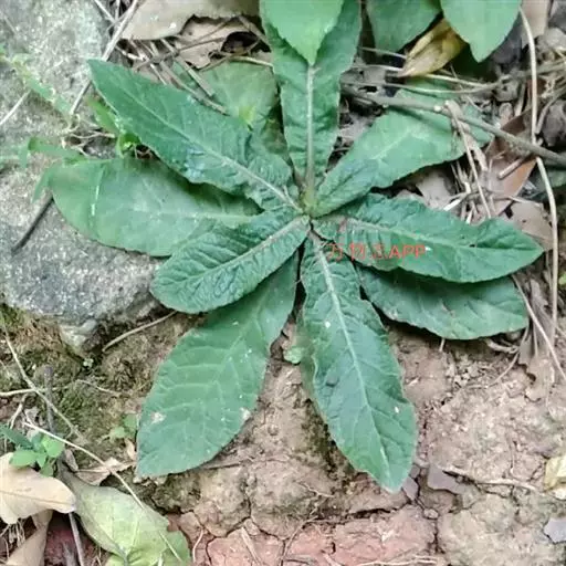 地胆草(学名:Elephantopus scaber L.)是菊科地胆草属直立草本植物。根状茎平卧或斜升,具多数纤维状根;茎二歧分枝,粗壮,被白色粗硬毛。单叶,大都基生,长园状披针形、匙形或长圆状匙形,长5-18厘米,宽达2-4厘米,前端钝圆,基部渐狭;茎生叶少而小。头状花序,多数密集成复头状花序;每个头状花序约有小花4朵,全为两性花,花冠筒状,淡紫色,前端4裂。瘦果,中上部细长,基部宽阔;有棱,被白色柔毛,具长硬刺毛;冠毛1层,灰白色。花期7-11月,果期11月至次年2月。