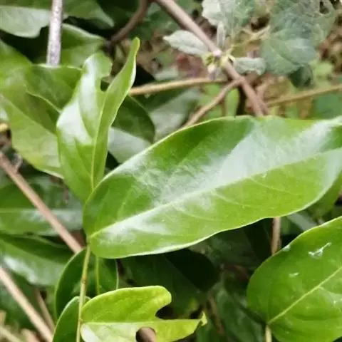 假鹰爪 直立或攀援灌木,有时上枝蔓延,除花外,全株无毛;枝皮粗糙,有纵条纹,有灰白色凸起的皮孔。叶薄纸质或膜质,长圆形或椭圆形,少数为阔卵形,长4-13厘米,宽2-5厘米,顶端钝或急尖,基部圆形或稍偏斜,上面有光泽,下面粉绿色。