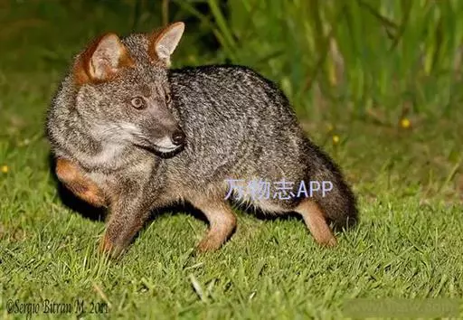 达尔文狐(学名:Lycalopex fulvipes):体长48-60厘米,平均肩高25厘米,尾长17-26厘米,体重1.9-3.9千克。是一种体形非常小的狐狸。毛色暗灰色,腿部和面部有红色。腹部、喉头、胸口和耳内有白色或奶油色毛。耳壳红毛特别鲜艳。