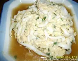 面糊:面粉、泡打粉过筛加入鸡蛋、水的混合物中搅拌均匀,冰箱冷藏1小时以上 卷心菜切碎 章鱼加料酒姜片焯水 海苔用剪刀剪碎 照烧酱:生抽酱油+水+糖=1:1:1烧开加水淀粉勾芡,保鲜膜贴面冷藏