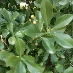 冬青卫矛,是卫矛科卫矛属灌木植物,聚伞花序,花白绿色,花萼裂片半圆形,花瓣近卵圆形,…