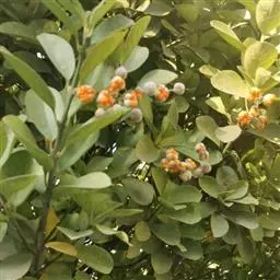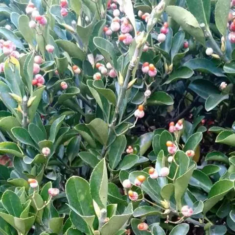 常绿灌木或小乔木,高达8米。 叶光亮革质,倒卵形或窄长椭圆形,长3-6厘米,宽2-3厘米。 聚伞花…