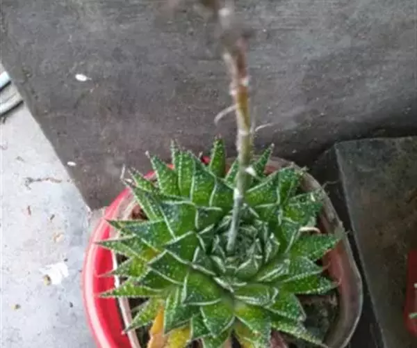 为多年生肉质草本。莲座叶盘径20厘米 波路 左右,叶片多达40-50片,排列紧凑。叶深绿色,叶尖稍红,三角形带尖,叶长7-8厘米,基部宽3厘米,叶背上部有2条龙骨突,布满白齿状小硬疣。叶背面下部有1条龙骨突,截面呈三角形,叶缘也布满白色小疣。花序高,花基部红色,先端绿色似鲨鱼掌。
