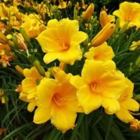 金娃娃萱草:是萱草的人工栽培的园艺品种。地下具根状茎和肉质肥大的纺锤状块根。叶基生,条形,排成两列,…