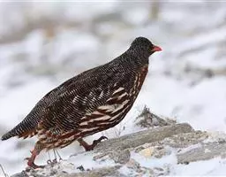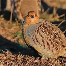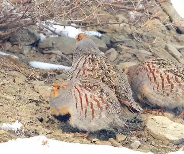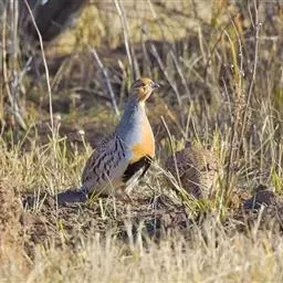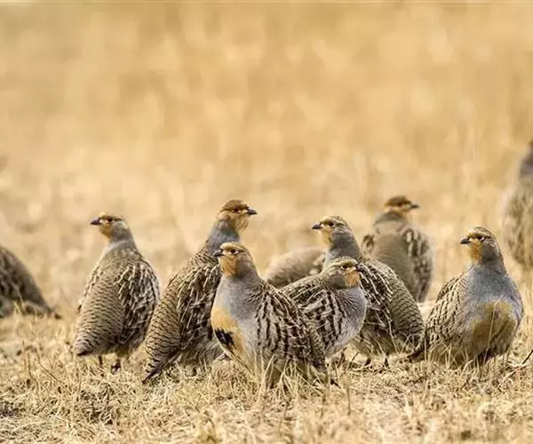 斑翅山鹑(学名:Perdix dauurica)体长250-310毫米,是体形略小的灰褐色鹑类。雄鸟的脸、喉中部及腹部桔黄色,腹中部有一倒"U"字形黑色斑块。与灰山鹑的区别在于胸为黑色而非栗色,喉部桔黄色延至腹部,喉部有羽须。雌鸟胸部无橘黄色及黑色,但有"羽须"。栖息于平原森林草原、灌丛草地、低山丘陵和农田荒地等各类生境中。以植物性食物为食,包括灌木和草本植物的嫩叶、嫩芽、浆果、草杆等,也吃蝗虫、蚱蜢等昆虫和小型无脊推动物。分布于俄罗斯的西伯利亚、乌苏里、蒙古和中国东北、华北和西北等北方大部分地区。