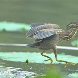 • 绿鹭:是鹳形目鹭科绿鹭属鸟类。体型小,头顶黑,枕冠亦黑色,上体蝉灰绿色,…